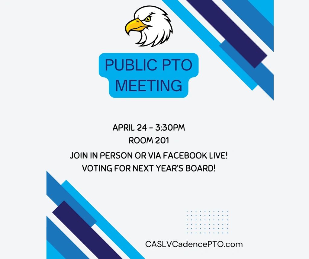 Join us this Friday in person in room 201 or via Facebook Live! Learn about what your PTO Board does and hear from the candidates for next year’s Board as we prepare for Board elections!