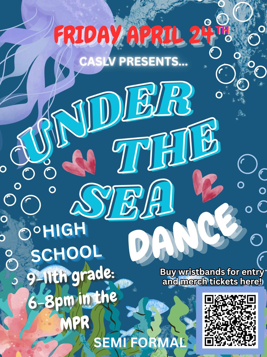 Grades 9-11, join us for an under-the-sea semiformal dance experience! Your high schoolers have been waiting for it! Purchase wristbands for entry in advance on our Shop website ($20 includes entry, a slice of pizza, and a drink). Additional food and merch can be purchased with merch tickets (available online and in person).